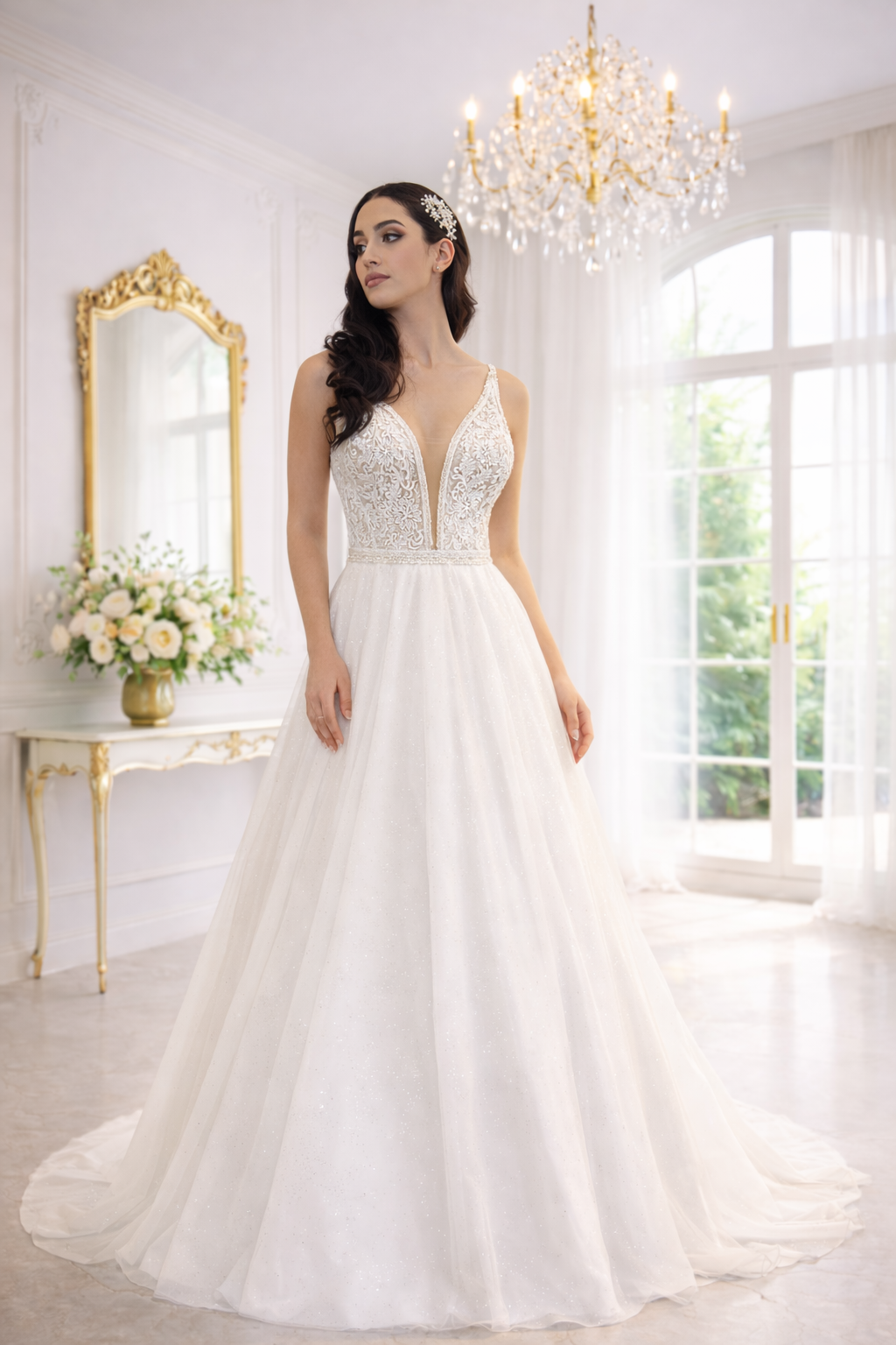 Düşük askılı, romantik kollu A kesim gelinlikler, zarafetin ve nostaljik şıklığın mükemmel birleşimidir. Omuzları nazikçe saran düşük askılar, feminen ve sofistike bir hava katarken, tül ya da dantel detaylı romantik kollar gelinliğe masalsı bir dokunuş ekler. A kesim formu ise her vücut tipine uyum sağlayarak kusursuz bir siluet oluşturur. Zarif, akışkan kumaşlarla tamamlanan bu gelinlik stili, hem klasik hem de modern detayları seven gelinler için ideal bir seçimdir.